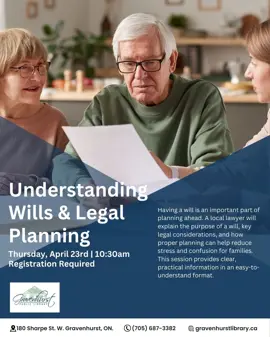 Registration: Required - Please call the Library at 705-687-3382 or email Sarah