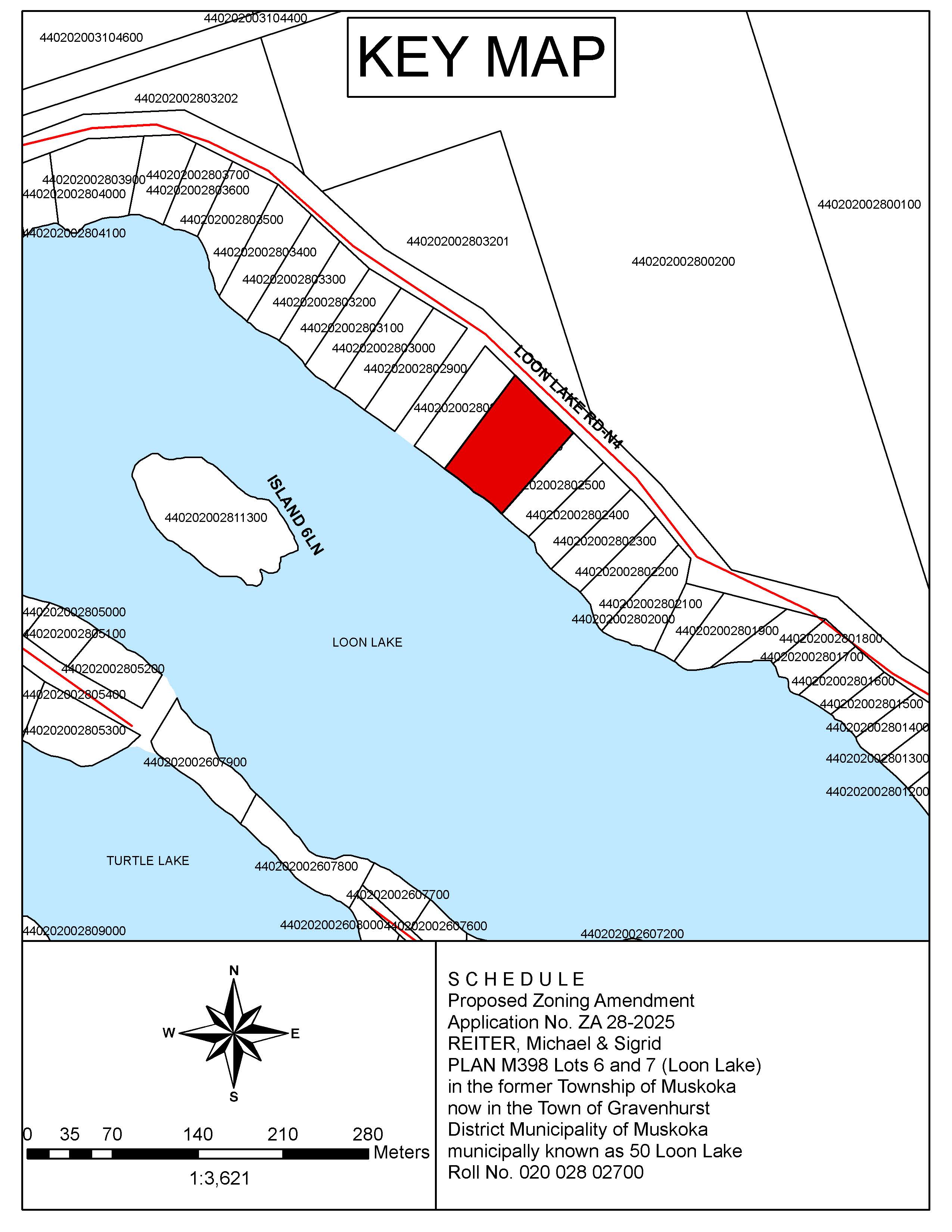 The property is legally described as Lots 6 & 7, Plan M398, in the former Township of Muskoka, now in the Town of Gravenhurst, District Municipality of Muskoka (Zoning Grid Schedule No. D04).