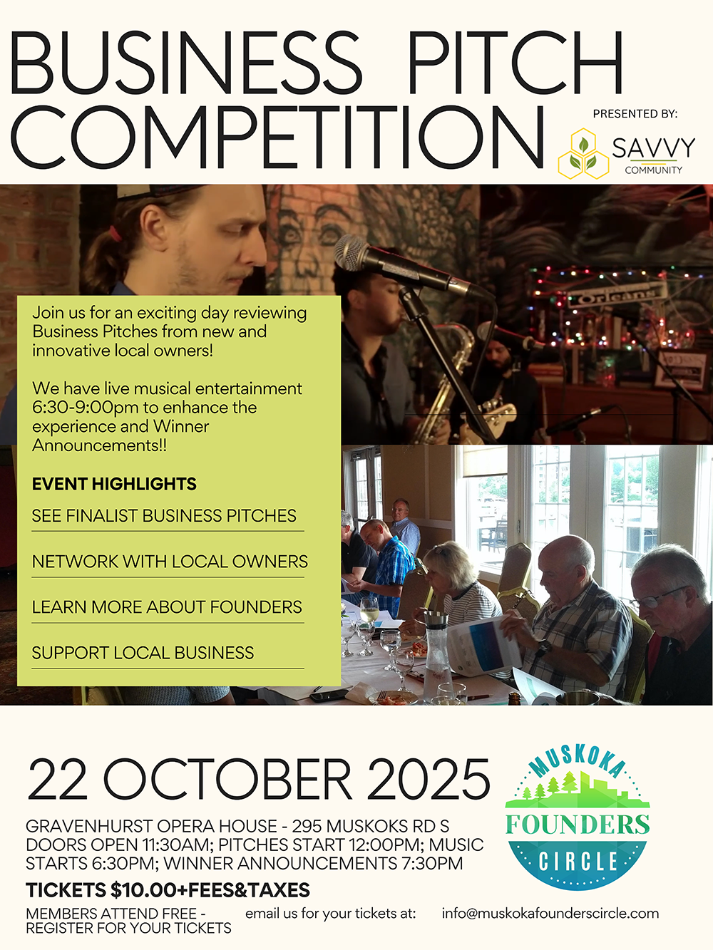 * Members attend free! Register for your tickets at info@muskokafounderscircle.com